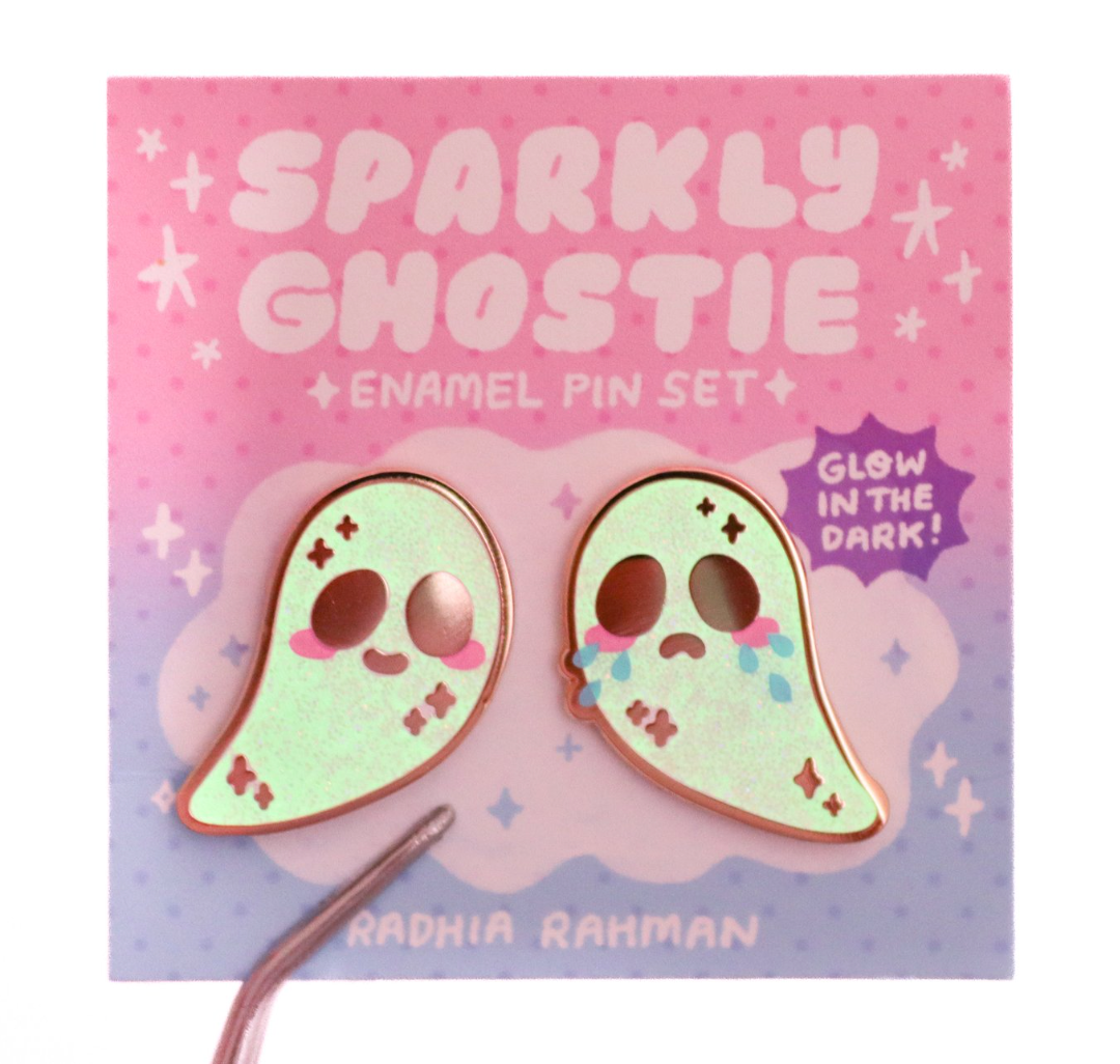 This is a set of sparkly glow in the dark ghostie pins! 👻 Use them as collar pins, share them with a friend, or keep ...