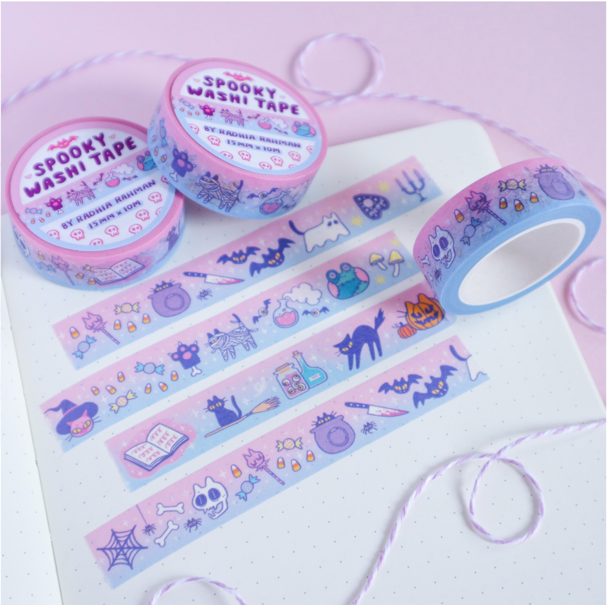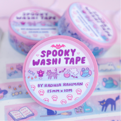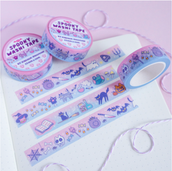 These washi tapes features a variety of sweet spooky illustrations in a pastel theme 🦇🕸👻🎃✨