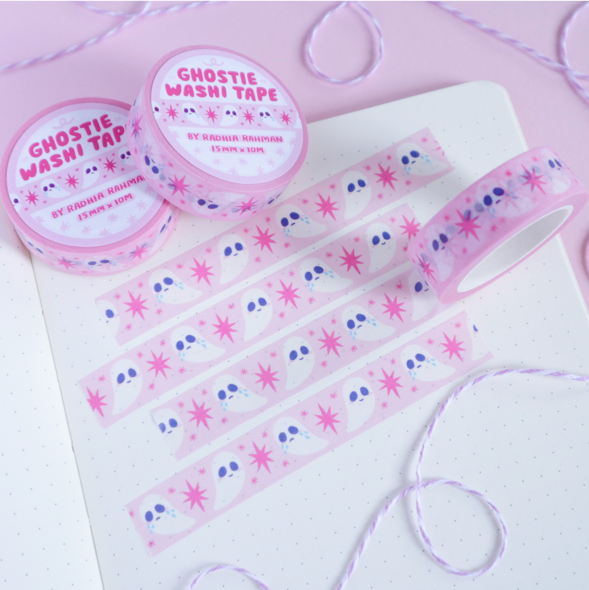 Each roll of washi is 15mm wide and 10m long! (~0.5 inches x 32 feet)