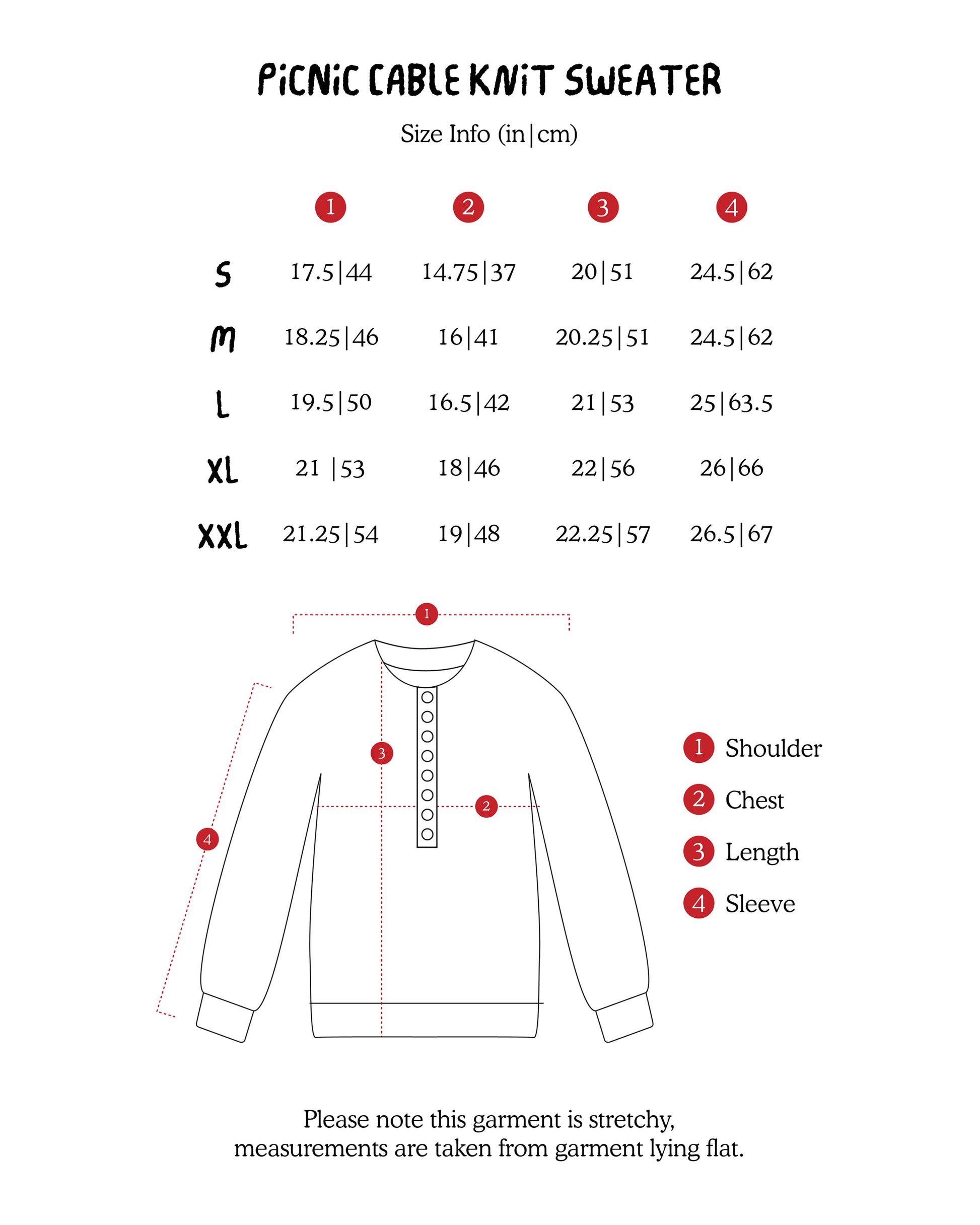 Headed to the office? Taking a stroll through the park, or celebrating with someone special?- the Picnic Cable Knit Sweater is made to move with you.